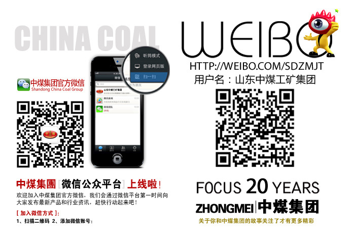 想了解山東中煤工礦集團(tuán)企業(yè)新動(dòng)態(tài)、新產(chǎn)品、想一時(shí)間找到中煤集團(tuán)客服嗎 ?如果想那就趕快關(guān)注吧!掃描下圖的二維碼,還可一鍵關(guān)注“山東中煤工礦集團(tuán)”新浪微博。