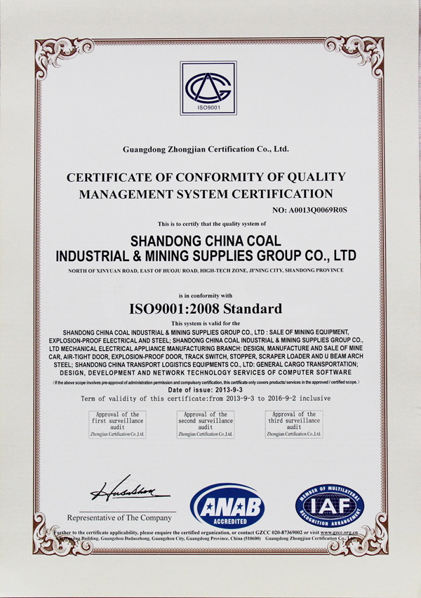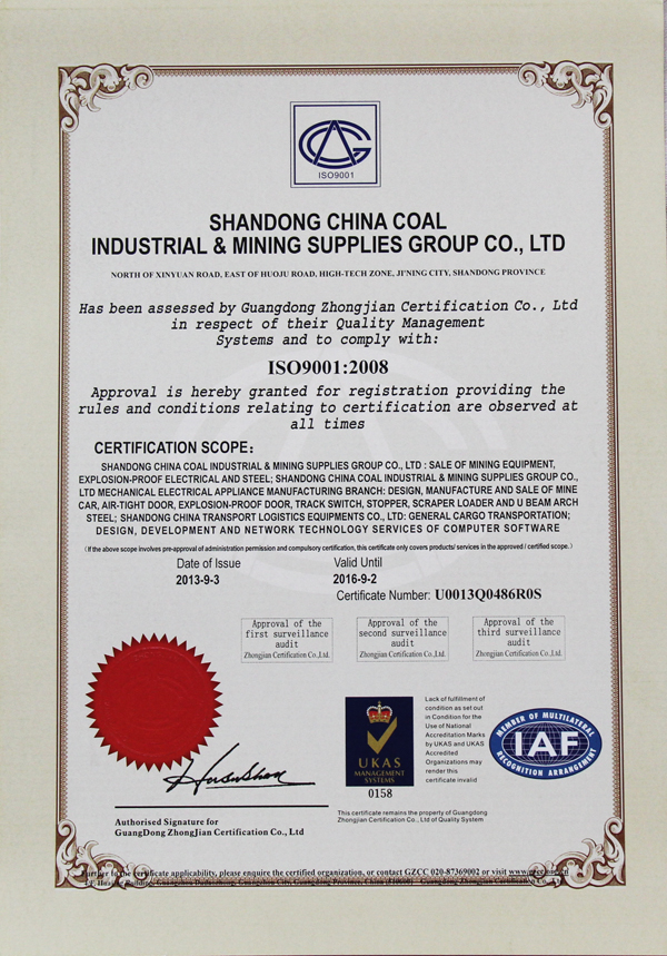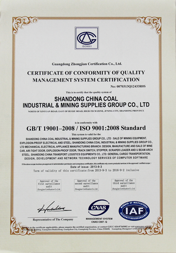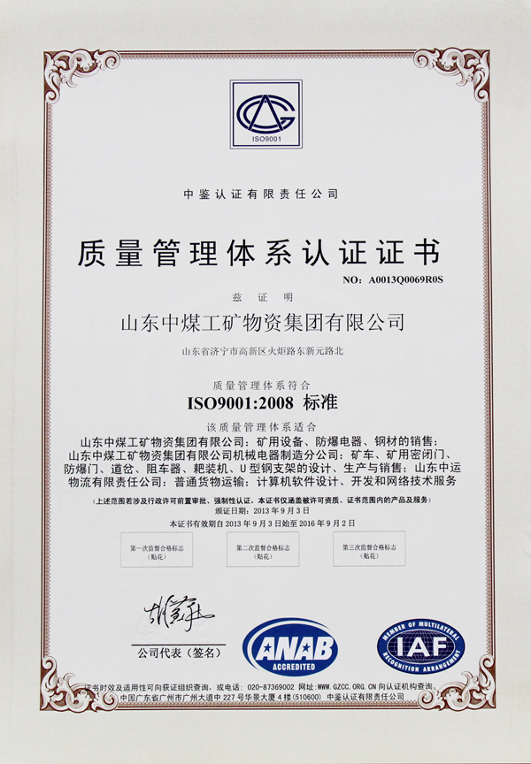 9月23日,山東中煤工礦物資集團有限公司通過ISO9001質(zhì)量認(rèn)證體系審核,榮獲CNAS、ANAB、UKAS質(zhì)量管理體系認(rèn)證證書。