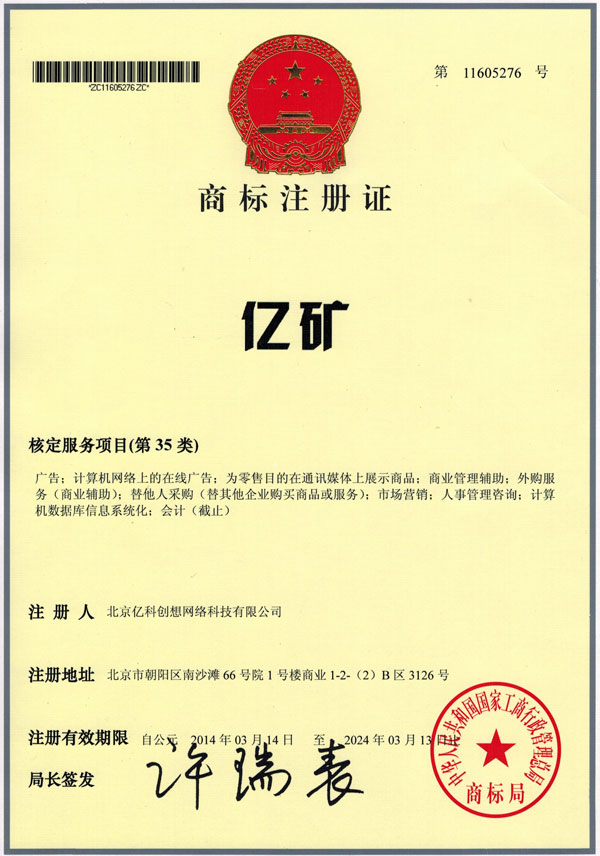 近日,山東中煤集團旗下子公司山東億煤機械裝備制造有限公司和北京億科創(chuàng)想網絡科技有限公司分別成功獲得“億煤”和“億礦”商標注冊證。